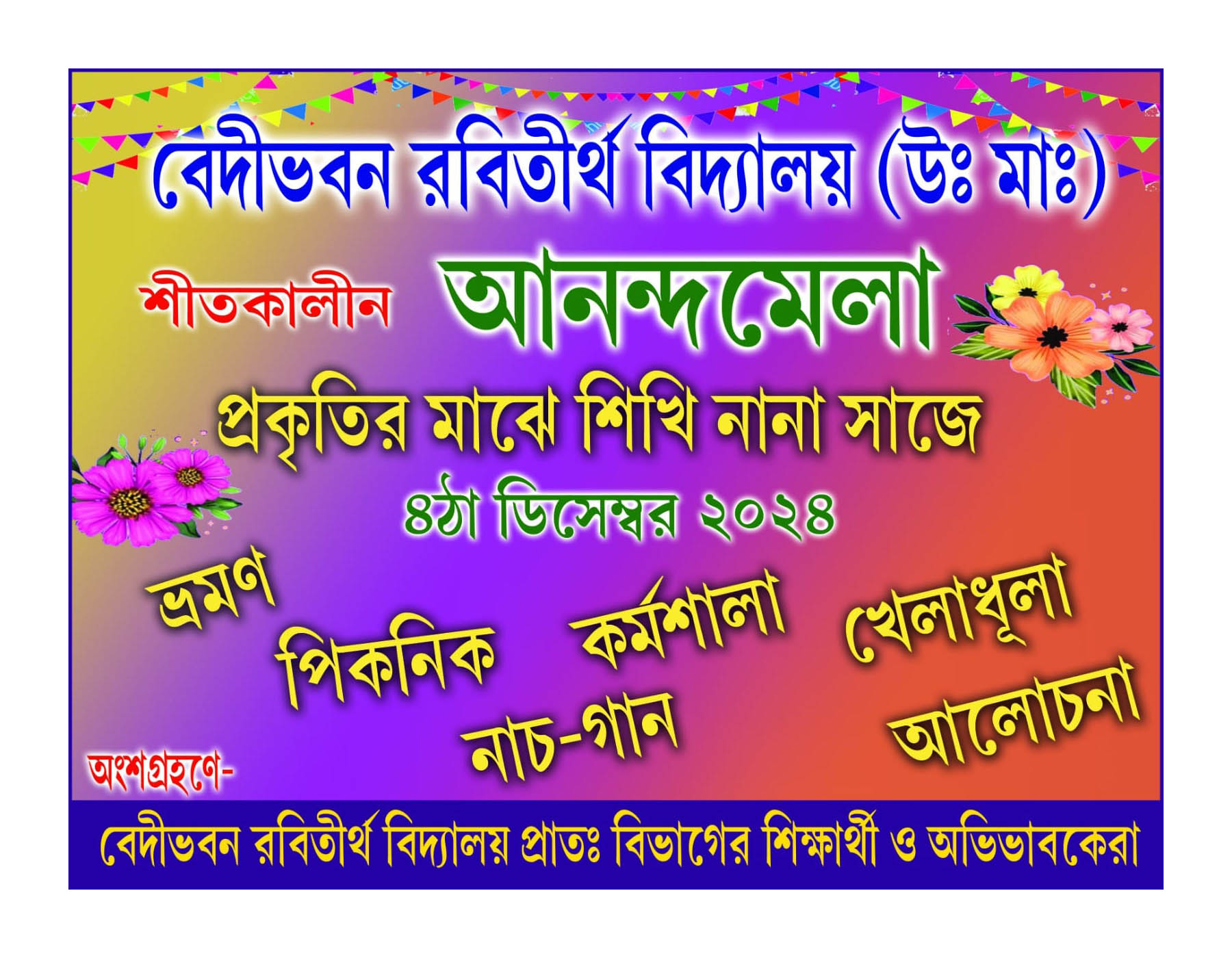 In the month of December, as the Annual Evaluation concludes and students enjoy a few well-earned break days, the school organizes a series of Joy of Learning sessions for children in the Pre-Primary and Early Primary stages. These delightful sessions are known as ANANDAMELA.